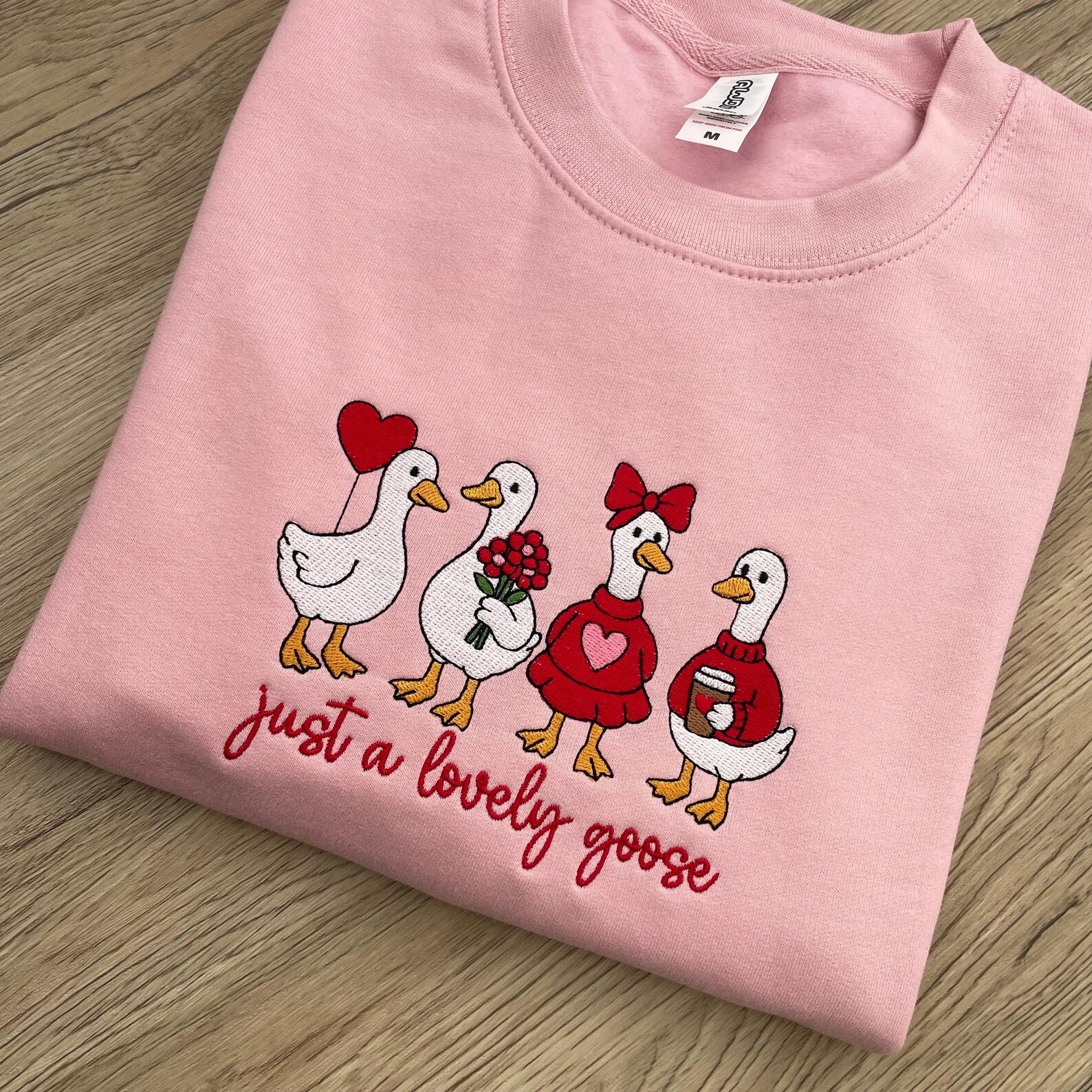 Just a Lovely Goose Embroidered Sweatshirt - Valentine's Day Jumper