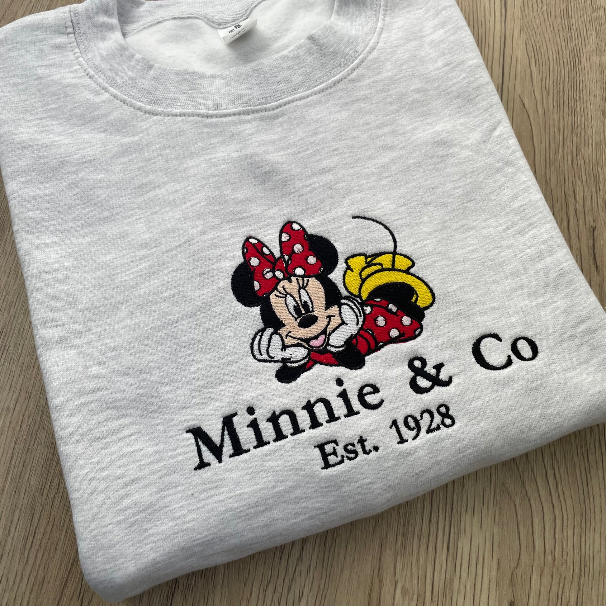 This Minnie & Co Embroidered Sweatshirt combines classic comfort with detailed craftsmanship. Featuring a finely embroidered Minnie Mouse design, it offers a stylish yet timeless look. Made from soft, durable fabric, this sweatshirt ensures warmth and long-lasting wear, making it an ideal choice for everyday casual wear or layering in cooler weather. Its expert embroidery adds a touch of character and quality that stands out.