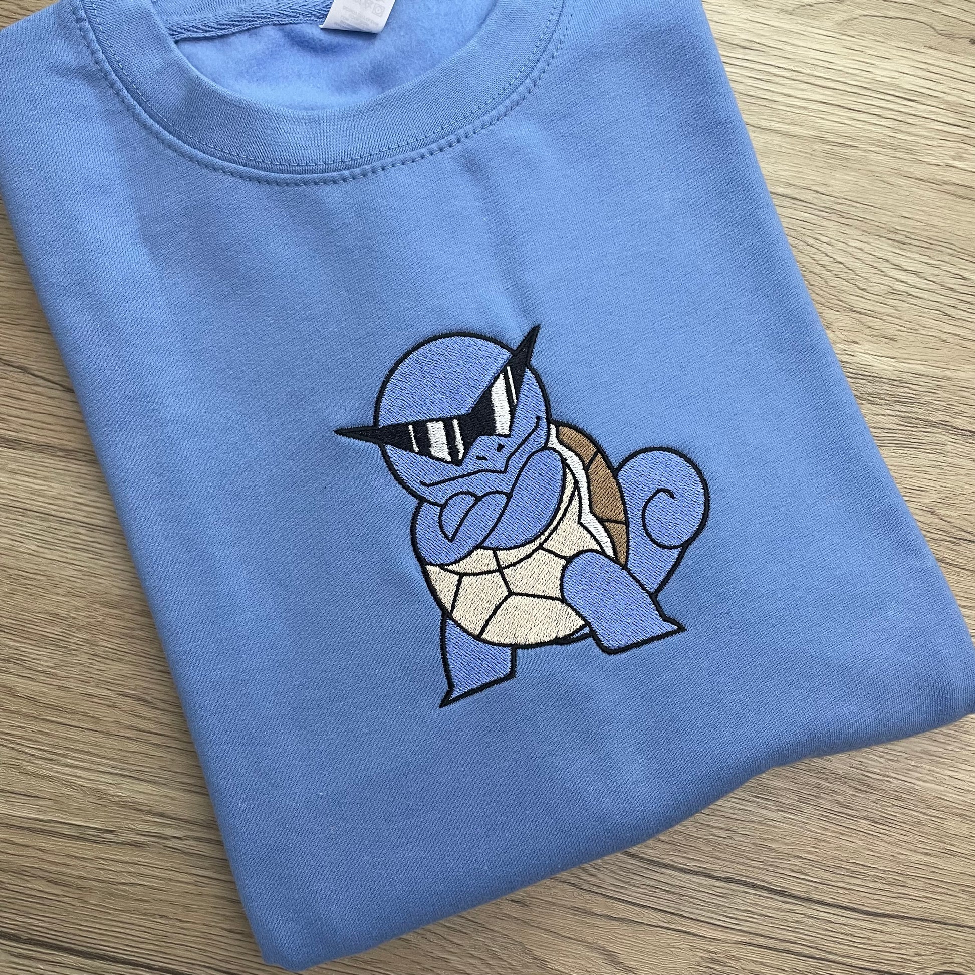 Stay cozy with this premium Squirtle Embroidered Sweatshirt from the Pokémon collection. Featuring precise embroidery of the beloved Water-type starter, this sweatshirt combines durability with style. The detailed craftsmanship ensures Squirtle's iconic features are captured perfectly, making it an essential addition for dedicated Pokémon trainers and collectors.